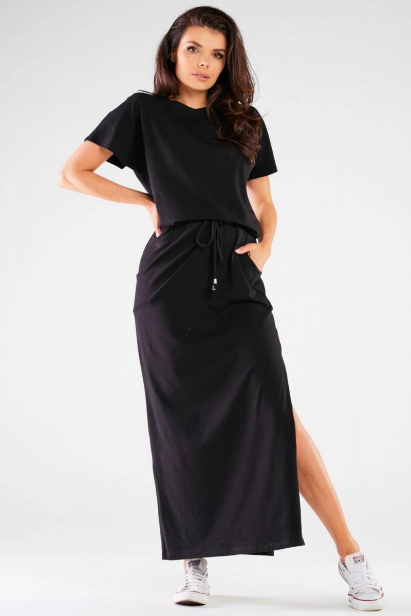 Long summer dress. The material pleasant to the touch allows the skin to breathe freely, making the dress incredibly comfortable and convenient to wear. The short-sleeved model is the best option for the spring-summer season. Designed and sewn in Poland.