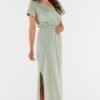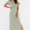 Maxi dress with short sleeves and a heart neckline. The maxi length allows to optically slim the figure and emphasize the assets of the figure. Designed and sewn in Poland.
