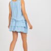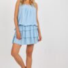 Sleeveless summer dress with a round neckline. Lined dress with elastic waistband and ruffles.
