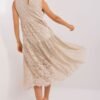 Sleeveless openwork dress with a flared cut. The dress has a lining.