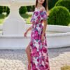 Rachel is made of delicate and airy fabric, which provides extraordinary wearing comfort. Impressive short buffet sleeves add a feminine charm, and the binding emphasizes the neckline in an attractive way. An elastic band has been sewn on the shoulders so that the Spanish dress does not slide down. A wonderfully elastic waistband ensures a snug fit while allowing you to move freely. Also suitable for pregnant women, this stylish dress is the perfect choice for special occasions. Rachel also features a leg cutout, which adds to its sensuality. The product is made and sewn in Poland.