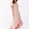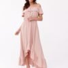 Asymmetrical maxi dress is made of soft, pleasant fabric that will provide comfort to the most demanding women. The dress is worn over the head. It is also characterized by uncovered shoulders that add to its elegant look and an asymmetrical bottom finished with a beautiful ruffle. The dress is distinguished by an elastic waistband that perfectly emphasizes the feminine curves. Maxi dress with uncovered shoulders will perfectly suit any type of beauty because it has a large range of colors. The dress will also excel in elegant styling. Therefore, it is ideal for women who appreciate the versatility of clothing. The product is manufactured and sewn in Poland.