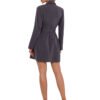 Jacket dress with collar and long sleeves. The dress fastens with covered buttons, unlined. Complete with a belt made of the same material as the dress.