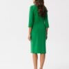 Here is a charming pencil cut dress that combines classic charm with modern style. Made of high-quality fabric, it is not only elegant, but also comfortable. Its round neckline adds to its subtlety. Modeling stitching running through the center of the dress emphasizes the silhouette and adds elegance. The 3/4 length sleeves are versatile and fashionable. The length of the dress reaches past the knee, which gives it versatility for various occasions. There is a slit on the front and side, which adds character to the dress. A concealed zipper at the back makes it easy to put on. The dress has no lining, which makes it lightweight and comfortable to wear. This is a dress that was designed and sewn in Poland, which proves its quality and uniqueness. It is a perfect choice for many occasions, from formal meetings to more relaxed events, adding to your confidence and style.