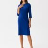 Here is a charming pencil cut dress that combines classic charm with modern style. Made of high-quality fabric, it is not only elegant, but also comfortable. Its round neckline adds to its subtlety. Modeling stitching running through the center of the dress emphasizes the silhouette and adds elegance. The 3/4 length sleeves are versatile and fashionable. The length of the dress reaches past the knee, which gives it versatility for various occasions. There is a slit on the front and side, which adds character to the dress. A concealed zipper at the back makes it easy to put on. The dress has no lining, which makes it lightweight and comfortable to wear. This is a dress that was designed and sewn in Poland, which proves its quality and uniqueness. It is a perfect choice for many occasions, from formal meetings to more relaxed events, adding to your confidence and style.