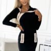 Two-tone dress with three zippers. It is ideal for work, birthdays, shopping and other less formal occasions. Made of thicker, stretchy material in black with beige inserts. Polish production. Numoco brand.