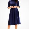 A flared dress with 3/4 sleeves and a boat neckline. Perfect for many occasions. Dress designed and sewn in Poland.