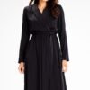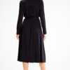 Elegant dress with shawl collar and flared bottom. Dress with elastic waistband and binding. On the front at the neckline and at the back decorated with creases.