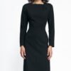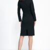 Elegant black dress made of a nice-to-touch fabric with pleats at the neckline. The dress is unlined and fastened with a covered zipper. The dress perfectly emphasizes the qualities of a woman’s figure. An excellent and comfortable choice for everyday office wear.