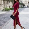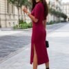 Knitted dress with a straight cut with a feminine leg cutout. The dress has a fitted cut, but not form-fitting. Made of natural, high-quality knit fabric without lining. Leah dress can be worn for many occasions. The classic cut combined with stilettos will create a look perfect for special occasions. Worn with boots/boots or flip-flops it will work well in casual styling. Dress designed and sewn in Poland.