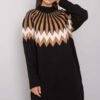 Knitted dress with long sleeves, and a turtleneck. The dress is decorated with a geometric pattern. Perfect for everyday wear and more.