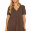 An airy short dress made of lightweight knit fabric is an ideal choice for summer days. Its material guarantees comfort of wearing even in the hottest heat. The dress has short sleeves and a v-neck, which gives it subtlety and feminine charm. A gold plate sewn into the back adds a unique shine and elegance to the dress. The dress is available in a variety of colors, allowing you to choose the shade that perfectly suits your personal style and preferences. This dress is not only an expression of elegance, but also of freedom and lightness, ideal for summer walks, romantic dates or meetings with friends.