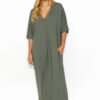 Long dress created from lightweight knit fabric is an absolute must have of the summer season. The model is perfect for warm days for almost every woman. The garment provides wearing comfort at a very high level. The cut is very tasteful and feminine, as the dress has a V neckline and beautiful short sleeves, reaching to the elbow. Practical pockets allow you to store small trinkets. Quite a large palette of colors allows you to choose a great match to your own style as well as personal preferences. The dress is elegant and at the same time classic, so it will fit perfectly for work, a date or a Sunday walk with the family.