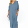 Long dress created from lightweight knit fabric is an absolute must have of the summer season. The model is perfect for warm days for almost every woman. The garment provides wearing comfort at a very high level. The cut is very tasteful and feminine, as the dress has a V neckline and beautiful short sleeves, reaching to the elbow. Practical pockets allow you to store small trinkets. Quite a large palette of colors allows you to choose a great match to your own style as well as personal preferences. The dress is elegant and at the same time classic, so it will fit perfectly for work, a date or a Sunday walk with the family.