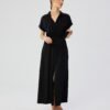 Created from high-quality 100% viscose fabric, this button-down dress is an exceptional piece of clothing, proudly designed and sewn in Poland. This maxi dress exudes elegance and comfort, creating harmony between style and functionality. The cut of the dress with a slightly flared cut provides freedom of movement, while being perfect for a variety of occasions. The collar adds class and chic to the dress, giving the whole look a sophisticated touch. Short kimono sleeves bring lightness and freshness to the styling. The dress is fastened at the front with buttons, which not only makes it easy to put on and take off, but also adds a subtle retro note. There are decorative flaps at breast level, giving the dress additional charm and originality. A tie belt is placed at the waist, which allows you to adjust the dress to individual preferences, while emphasizing the feminine curves. It is worth noting that the dress has no lining, which makes the viscose fabric fit perfectly on the body, while remaining pleasant to the skin. This dress is not only an expression of personal style, but also a support for domestic production and design.