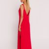 Knit dress is a unique product, created for women who appreciate freedom of movement, comfort and fashionable style. The design and production took place in Poland, which guarantees high quality workmanship and attention to detail. The dress is presented in an oversize style, which makes the woman wearing it feel not only comfortable, but also fit into the current fashion trends. The A-line cut gives the dress a loose, airy character, while emphasizing subtlety and femininity. The over-the-shoulder model of the dress makes it extremely comfortable to wear, while remaining a fashionable and stylish piece of clothing. The twisted shoulder straps add lightness to the dress, emphasizing nonchalance and freedom. The neckline of the dress is designed in a V-shape in the front, which gives the whole look a delicate and elegant touch. However, it is the deep neckline with a decorative blacktop placed at the back that makes the dress extremely striking. The tinsel is carefully crafted, adding a subtle touch and enriching the design of the dress. It is worth noting that the dress has no lining, making it light and airy. It’s the perfect choice for summer days when you want to feel both comfortable and stylish. This knit dress is not just a closet item, but a true work of tailoring, which comes from Poland, a country with a tradition in the production of high-quality clothing.