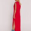 This knit dress is an expression of luxury and exceptional Polish tailoring, where attention to detail and comfort come together in one design. Designed and sewn in Poland, it represents unique style and wearing comfort. The oversize dress is an excellent choice for women who value freedom of movement without sacrificing elegance. Its cut, worn over the head, makes it extremely easy and comfortable to wear. The slit on the side adds lightness and subtle sensuality to the dress. The sleeveless design of the dress, supported by shoulder pads, adds a modern and unique touch to the whole look. The shoulder cushions add structure while emphasizing the unique shape of the dress. The maxi length makes the dress suitable for both elegant outings and more casual occasions. The decorative logo-embellished plaque placed on the back is not only a design element, but also a subtle accent that enriches the entire design. The careful workmanship of the tinsel emphasizes the high quality of the dress. In addition, the lack of lining makes the dress airy and lightweight, ideal for warmer days. This knit dress is not just a garment, but an expression of Polish tailoring tradition, combining elegance, comfort and unique design. Ideal for women who want to express themselves through fashion, emphasizing their individual style.
