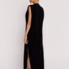 This knit dress is an expression of luxury and exceptional Polish tailoring, where attention to detail and comfort come together in one design. Designed and sewn in Poland, it represents unique style and wearing comfort. The oversize dress is an excellent choice for women who value freedom of movement without sacrificing elegance. Its cut, worn over the head, makes it extremely easy and comfortable to wear. The slit on the side adds lightness and subtle sensuality to the dress. The sleeveless design of the dress, supported by shoulder pads, adds a modern and unique touch to the whole look. The shoulder cushions add structure while emphasizing the unique shape of the dress. The maxi length makes the dress suitable for both elegant outings and more casual occasions. The decorative logo-embellished plaque placed on the back is not only a design element, but also a subtle accent that enriches the entire design. The careful workmanship of the tinsel emphasizes the high quality of the dress. In addition, the lack of lining makes the dress airy and lightweight, ideal for warmer days. This knit dress is not just a garment, but an expression of Polish tailoring tradition, combining elegance, comfort and unique design. Ideal for women who want to express themselves through fashion, emphasizing their individual style.