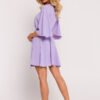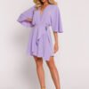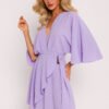 We present a unique dress made of crepe fabric, which was proudly designed and sewn in Poland. This mini dress is a true masterpiece of Polish tailoring, combining elegance, comfort and original design. The crepe fabric used in the creation of this dress is a material with a delicate texture, which fits perfectly on the body, giving the dress a subtle, airy character. The Polish contribution to the design of this dress reflects the attention to the quality of workmanship and the skillful combination of modern trends with the tradition of tailoring. The cut of the dress is flared, which gives it lightness and mobility. Bat sleeves add an element of originality, creating a subtle, unique detail that attracts attention. The dress adopts an envelope shape, with a covered binding inside, which ensures not only comfortable wear, but also a neat look. The decorative binding with a buckle on the outside adds character and elegance to the dress, while at the same time making a designer fashion statement. The waist of the dress is partially elastic, which emphasizes the natural curves of the figure, as well as provides comfort in wearing. This dress is ideal for both summer gatherings and more formal occasions. A unique feature of this dress is the lack of lining, which makes the crepe material perfectly adhere to the body, leaving a feeling of lightness and freedom. It’s not just a garment, it’s an expression of Polish tailoring tradition and designer innovation, which is proudly displayed on the global fashion scene.