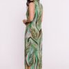 A dress of exceptional design, made of lightweight fabric with an original print, is a true tribute to Polish design craftsmanship. This model is a maxi dress, whose character is emphasized by a sensual V-shaped neckline. In addition, an elegant overlap was placed under the neckline, adding finesse and style to the creation. The dress is practical and quick to put on, as it is worn over the head, which makes it extremely comfortable to wear. The sleeveless cut adds lightness and gives the dress an airy summer feel. The lack of lining, in turn, emphasizes the lightness of the material, allowing the skin to breathe freely. A subtle slit is placed on the side of the dress, which adds sophisticated movement to the creation and emphasizes the feminine silhouette. The fabric with an original print is a unique element that gives the dress a personal touch and makes it unique. The design and production of the dress take place in Poland, which shows the commitment to the development of the domestic fashion industry. This dress is not only an expression of individual style, but also pride in Poland’s heritage of creativity and craftsmanship.