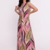 A dress of exceptional design, made of lightweight fabric with an original print, is a true tribute to Polish design craftsmanship. This model is a maxi dress, whose character is emphasized by a sensual V-shaped neckline. In addition, an elegant overlap was placed under the neckline, adding finesse and style to the creation. The dress is practical and quick to put on, as it is worn over the head, which makes it extremely comfortable to wear. The sleeveless cut adds lightness and gives the dress an airy summer feel. The lack of lining, in turn, emphasizes the lightness of the material, allowing the skin to breathe freely. A subtle slit is placed on the side of the dress, which adds sophisticated movement to the creation and emphasizes the feminine silhouette. The fabric with an original print is a unique element that gives the dress a personal touch and makes it unique. The design and production of the dress take place in Poland, which shows the commitment to the development of the domestic fashion industry. This dress is not only an expression of individual style, but also pride in Poland’s heritage of creativity and craftsmanship.