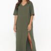 A loose long dress with short sleeves, adding charm and timeless style. The dress impresses with a slit in the front, adding a note of subtle elegance, and at the waistline it is decorated with an ornamental gold plate, gently focusing attention on the female figure. The heart neckline emphasizes the neck and collarbones, giving the dress a feminine charm. At the same time, the very casual cut makes the dress an ideal choice for summer days, guaranteeing not only an impeccable appearance, but also comfort in wearing. Available in a variety of colors, it is an excellent choice for women who appreciate comfort and fashion regardless of trends.