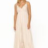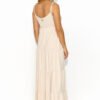 A long summer dress, divided into segments imitating subtle ruffles, is the quintessence of lightness and romance. The dress, tied on thin strings, adds a unique delicacy and freedom of movement. An overlapping heart neckline subtly emphasizes the bust, adding feminine charm to the creation. An ornate gold plate sewn into the back adds elegance and unique glamour to the dress. The summer creation comes in a variety of colors, allowing you to match individual preferences and style.