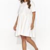 A casual mini dress with a unique charm, with an elegant gold bling sewn on the front. The creation, with short sleeves and a casual cut, exudes girlish charm. The round neckline perfectly emphasizes the carefree look, adding lightness and casualness. This dress, available in several colors, is the perfect choice for everyday wear, adding a touch of style to everyday activities. It will work great at work, but also when meeting with friends. Everything is a matter of accessories. It’s a combination of comfort, elegance and girly finesse, and a very comfortable everyday style.