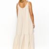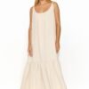 Long timeless dress with tied straps, perfect for hot summer days. The huge advantage of this dress is undoubtedly the loose cut, which fits the figure of any woman. The bottom of the creation, crowned with a wide frill, gives a casual character and makes it look airy and fashionable. An ornamental gold plate sewn into the back adds elegance and unique glamour to the dress. The summer creation comes in a variety of colors to suit individual preferences and style. Length of the dress measured from the armpit.