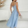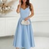 Strapless midi dress slightly flared. The top of the creation on thin straps, perfectly fitted at the waist. Shoulders as well as the back are exposed. The dress is fastened with a covered zipper and has a lining. Model adding chic and femininity.