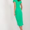 This dress is a combination of elegance and comfort, perfect for everyday styling. Made of smooth material that gently sits on the body, it looks stylish and modern. Its front is decorated with a striking crease, which adds subtlety and feminine charm, while covering up any imperfections. Short sleeves and a heart neckline emphasize the delicacy of the silhouette, adding elegance and subtlety to the dress. The midi length gives it a versatile character that makes it suitable for various occasions. Pencil dress is a classic that always looks stylish and elegant. Its fitted cut emphasizes the feminine curves, adding confidence and chic. In addition, the front slit at the bottom of the dress adds lightness and dynamism. Made mainly of polyester, the dress is easy to care for and maintain, while maintaining a great look for a long time. With this combination of style, comfort and functionality, this dress becomes an indispensable closet item that will make every day full of confidence and elegance.