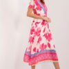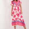 Summer dress with short sleeves in the form of frills. Dress with lining. Envelope neckline, belt fastened at the waist, pleated bottom. An ideal choice for many occasions.