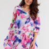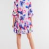 Loose chiffon dress with elastic lining, with two ruffles at the bottom and small ruffles at the sleeves.