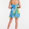 Short dress made of chiffon on elastic lining, the whole neckline decorated with a small frill. Dress on thin straps, sewn into the waist elastic to fit the figure.