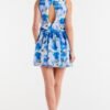 The dress is made of chiffon with an elastic lining, has an elastic waistband, and has two ruffles at the bottom.