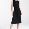 A regular fit dress made of a blend of viscose, linen, and cotton, perfectly combines elegance with comfort. It features a round neckline and is sleeveless, adding lightness and a summery feel. The hidden zip closure at the back ensures a neat finish and easy wear. The midi length makes the dress versatile and suitable for various occasions. It comes with a tie belt that allows for waist definition. The dress is unlined, which further enhances comfort on warmer days.