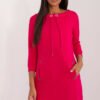 This casual dress with a simple cut is a perfect choice for everyday occasions. Made of dominant cotton, it provides comfort throughout the day. The dress reaches knee length, giving it a universal character suitable for various situations. It features 3/4 sleeves and a round neckline with drawstrings, adding a subtle charm and the ability to adjust. The inserted pockets are a practical addition that makes this dress not only stylish but also functional.