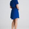 A loose-fitting dress with a collar and short sleeves finished with cuffs. Slit pockets in the side seams. Belt fastening at the waist.