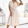 Beige emery with gold buttons, waist tie and short sleeves. Brand numoco basic. European production.