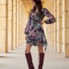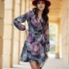 The dress is made of a pleasant patterned fabric that looks extremely feminine and tasteful. The envelope cut dress has a tie at the waist, which will perfectly emphasize any type of figure. The shorter mini length emphasizes the legs and ensures freedom of movement. Long sleeves with a delicate crease on the shoulders are finished with an elastic band, which builds a buff effect. A convertible neckline emphasizes the neck and elongates the silhouette. Cassie model is a dress that can be used for various occasions. Paired with elegant heeled shoes and a small clutch bag, it will be a great choice for more formal events. Matching it with shoes like ballerinas or espadrilles, you will create a more casual, girly look. The product is made and sewn in Poland.