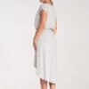 Asymmetrical dress with an overlapping neckline with short sleeves. Dress with an eye-catching tie at the waist. Perfect for many occasions.