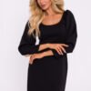 Charming mini dress made of high-quality fabric, ideal for special occasions. Cut off under the bust, it emphasizes the feminine silhouette, and the deep square neckline adds originality and subtly exposes the neckline. The dress has long sleeves with delicate shoulder buffets to add volume, and darts at the bottom for a perfect fit. A covered zipper at the back allows for comfortable donning and a perfect fit. The dress is lightweight, unlined. Designed and sewn in Poland, it is the quintessence of elegance and feminine charm.