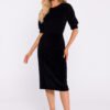 Elegant dress made of soft velour knit, combining comfort with sophisticated style. Cut off at the waist, it perfectly emphasizes the waist, and the pencil bottom of the dress reaching past the knee, gives the whole dress a classic character. Short cuffed sleeves add subtle elegance to the dress, and there is a slit at the back, which provides freedom of movement and brings lightness to the styling. The model has no lining, which makes it lightweight and comfortable to wear. The dress is fastened with a covered zipper on the side, which provides a discreet closure. Designed and sewn in Poland, it is the perfect choice for special occasions where elegance and style come first.