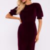 Elegant dress made of soft velour knit, combining comfort with sophisticated style. Cut off at the waist, it perfectly emphasizes the waist, and the pencil bottom of the dress reaching past the knee, gives the whole dress a classic character. Short cuffed sleeves add subtle elegance to the dress, and there is a slit at the back, which provides freedom of movement and brings lightness to the styling. The model has no lining, which makes it lightweight and comfortable to wear. The dress is fastened with a covered zipper on the side, which provides a discreet closure. Designed and sewn in Poland, it is the perfect choice for special occasions where elegance and style come first.