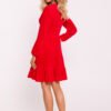 Stylish dress made of soft velour knit that combines elegance with comfort. The model with an emphasized waist, which beautifully exposes the feminine silhouette, and a deep V-shaped neckline, adding sensuality to the whole. Long buffet sleeves finished with elastic give the dress a romantic character and lightness. The bottom of the dress is slightly flared and finished with a ruffle, which introduces subtle movement and elegance, and the below-the-knee length makes it ideal for many occasions. A concealed zipper on the side provides a convenient closure, and the lack of lining makes the dress lightweight and comfortable to wear. Designed and sewn in Poland, this dress is an excellent choice for women who want to combine a fashionable look with comfort for everyday and special events.