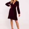 Stylish dress made of soft velour knit that combines elegance with comfort. The model with an emphasized waist, which beautifully exposes the feminine silhouette, and a deep V-shaped neckline, adding sensuality to the whole. Long buffet sleeves finished with elastic give the dress a romantic character and lightness. The bottom of the dress is slightly flared and finished with a ruffle, which introduces subtle movement and elegance, and the below-the-knee length makes it ideal for many occasions. A concealed zipper on the side provides a convenient closure, and the lack of lining makes the dress lightweight and comfortable to wear. Designed and sewn in Poland, this dress is an excellent choice for women who want to combine a fashionable look with comfort for everyday and special events.