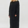 Long women’s sweater with a loose fit, made of melange pattern fabric. The sweater has an oversize cut with long sleeves, which adds to its comfort and casual style, and the lowered shoulder line perfectly masks the more massive shoulders. It is finished with wide ribs on the sleeves, so you can adjust their length while blousing them. The neckline is rounded and finished with a ribbed hem. The sweater reaches to the ankles, creating an elegant and original look, perfect for colder days. A vertical seam is visible on the front, which adds subtle detail to the sweater and optically elongates the silhouette. It is an ideal choice for autumn and winter days, going well with styling with high boots. The sweater combines comfort and style, so it can be worn both on a daily basis and for more elegant occasions.