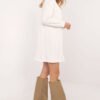 Casual sweat dress, ideal for everyday wear, provides comfort and style. Made of soft and airy micro modal material, it gently sits on the figure, guaranteeing comfortable wear. The dress has a length before the knee and a flared cut, which adds lightness and feminine charm. The long sleeve and round neckline create a classic, minimalist look, while the plain pattern emphasizes its versatile nature. The lack of a clasp ensures freedom of wear, while additional patches on the front add a fashionable, original touch. Perfect for everyday styling.
