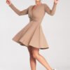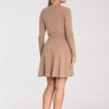 Cotton dress with long sleeves and an envelope neckline. There is an elastic band at the waist. The bottom of the dress is flared.