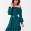 The trapeze cut dress with adjustable waist belt is an elegant, airy creation that delights with its light, wide sleeves ending in a cuff. Its girlish charm is emphasized by a ruffle, adding a unique lightness. This model features a beautiful Spanish neckline and long sleeves, which, thanks to elastic bands at the shoulders, stay perfectly in place. The bottom of the dress is decorated with a stylish ruffle, and the loose cut guarantees comfortable wearing. Thanks to its casual cut, it fits perfectly on the figure, providing full comfort. The dress, ideally suited for all celebrations and everyday styling, will also be perfect for holiday trips. Its versatility allows you to freely combine it with a variety of accessories. The product is made and sewn in Poland.